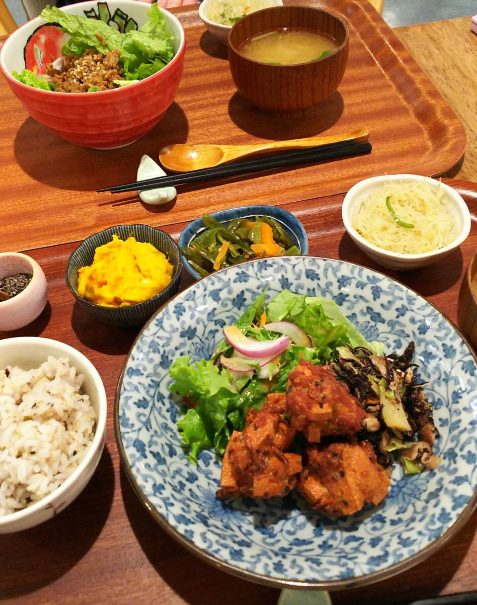 お野菜がたっぷりで、ご飯も玄米か八穀米を選べます。