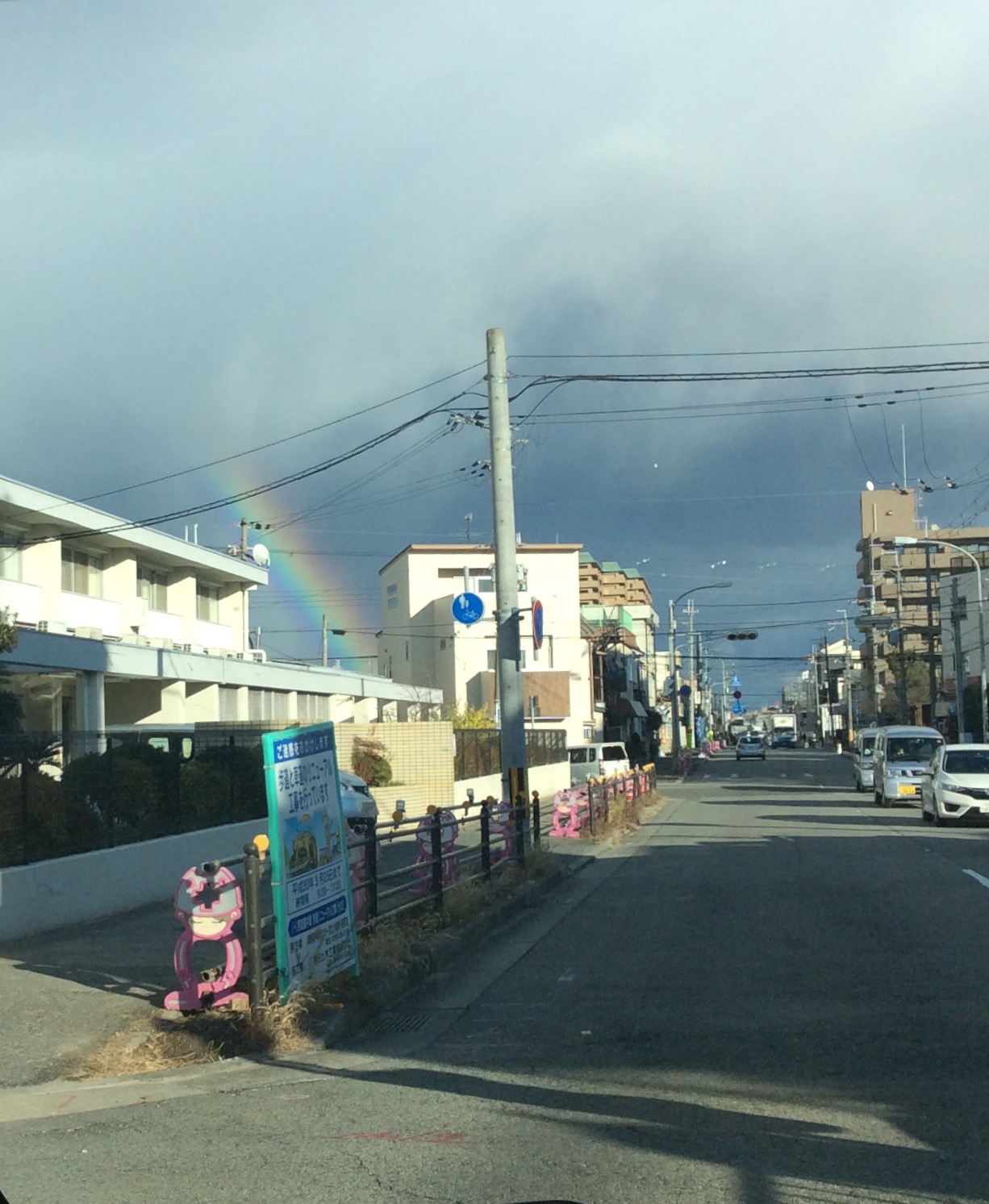 今日、夕方にすこ~しだけ、虹を見ることができました。