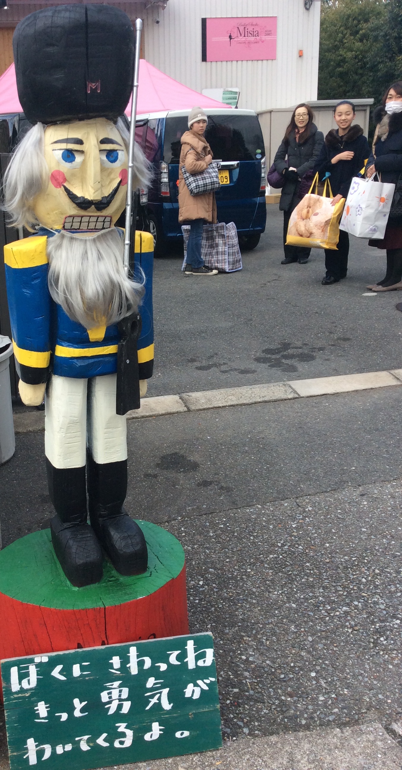 バレエスタジオミーシャさんの入り口の所に立っている、