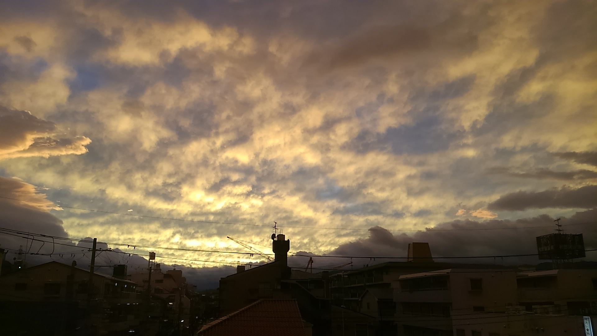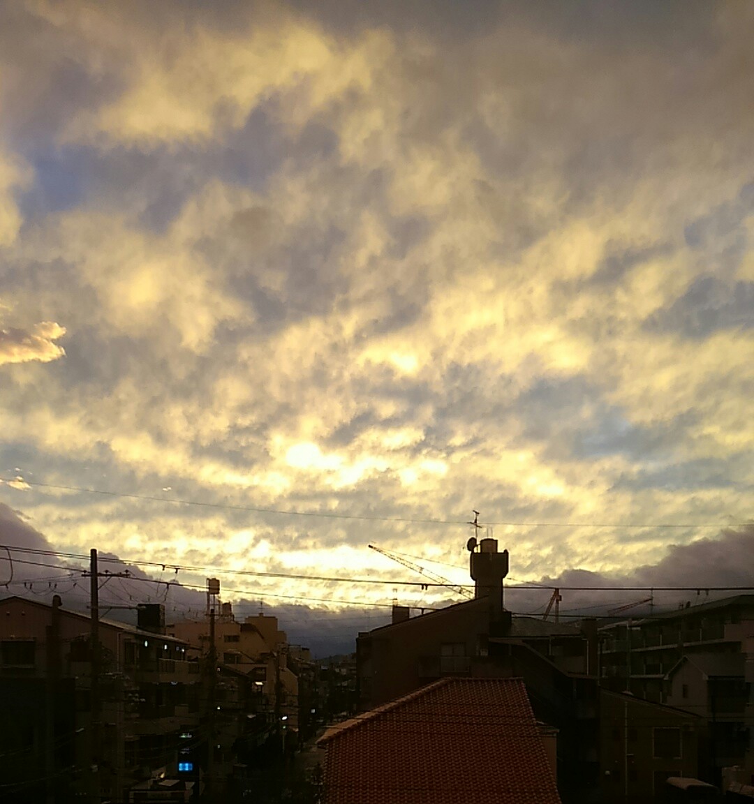火曜日の夕焼け空・・・一瞬で、空が真っ赤に染まりました。