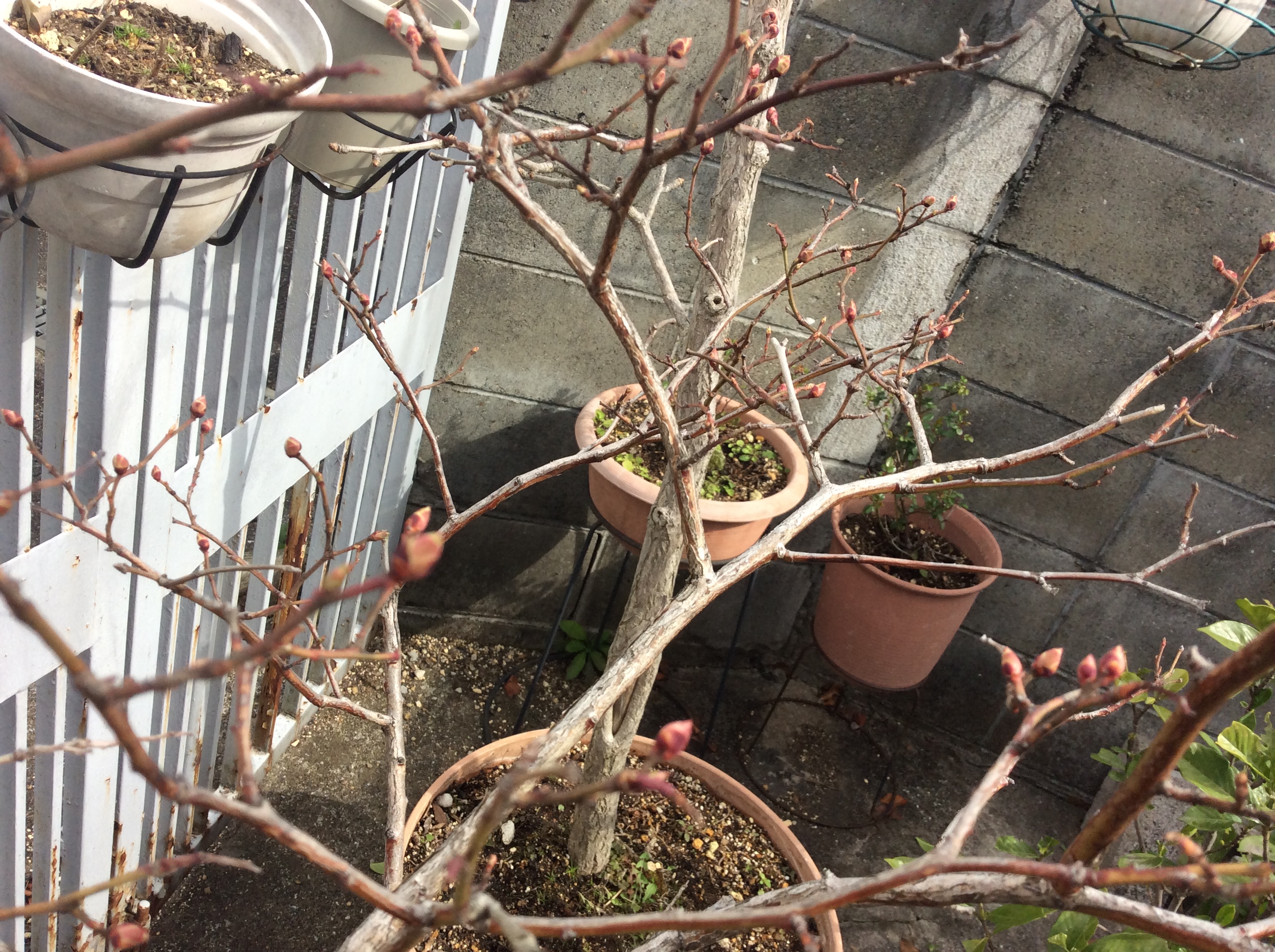 お庭のブルーベリーの木にも新芽が出ていました。